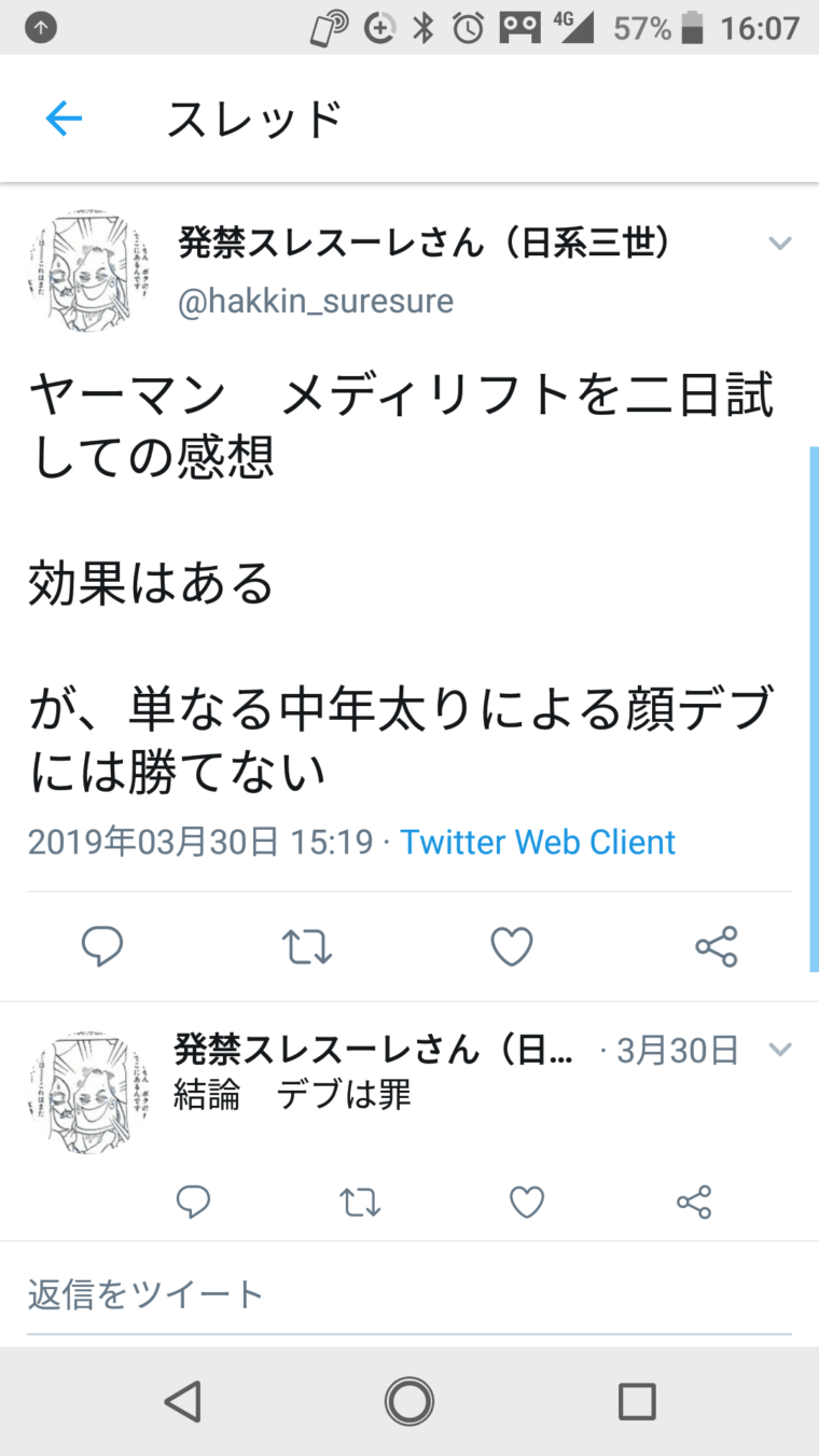 ヤーマンのメディリフトの口コミ 2日目
